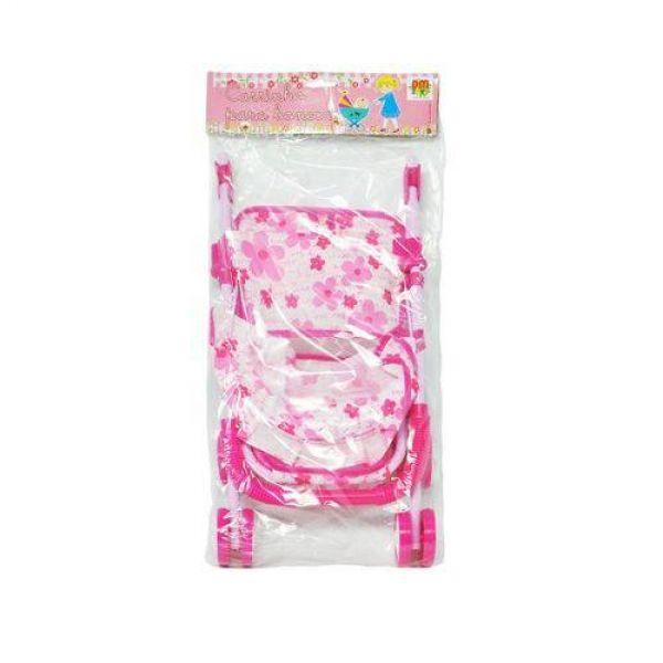 Carrinho para boneca modelo berço, estrutura metálica e disponível em duas estampas sortida: Coração e Flores