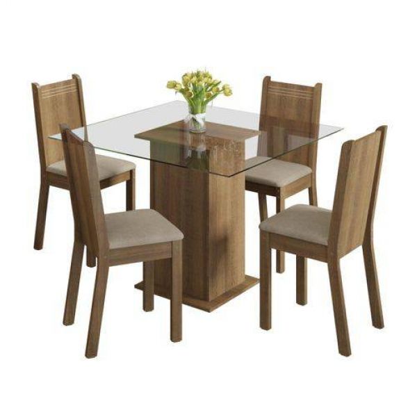 Conjunto Sala de Jantar Magda Madesa Mesa Tampo de Vidro com 4 Cadeiras