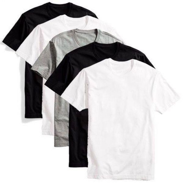 Kit com 5 Camisetas Básicas Cinza, Preta e Branca com gola arredondada e mangas curtas. A Camiseta Básica é perfeita para compor looks casuais.