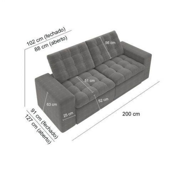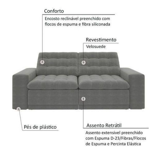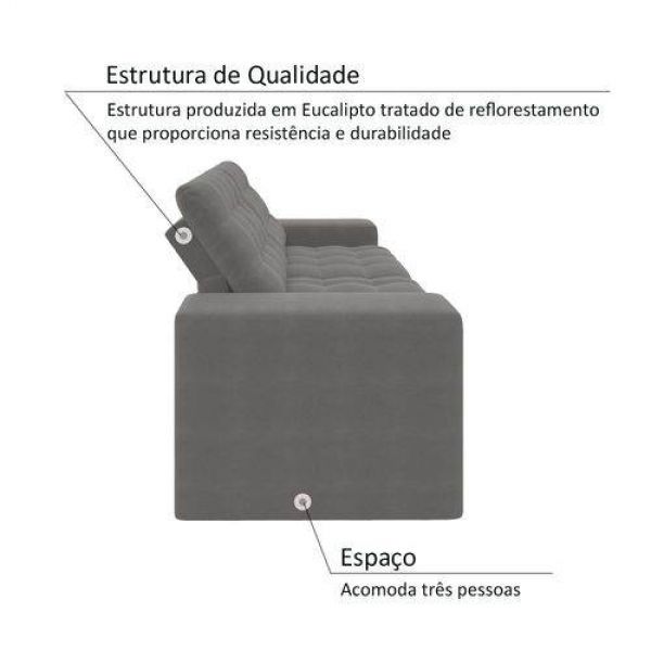 Informações do produto: Sofá 3 Lugares Net Titan Assento Retrátil E Reclinável Grafite 2,00m (l)